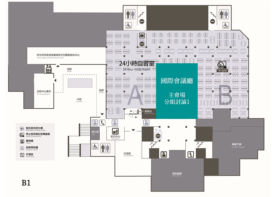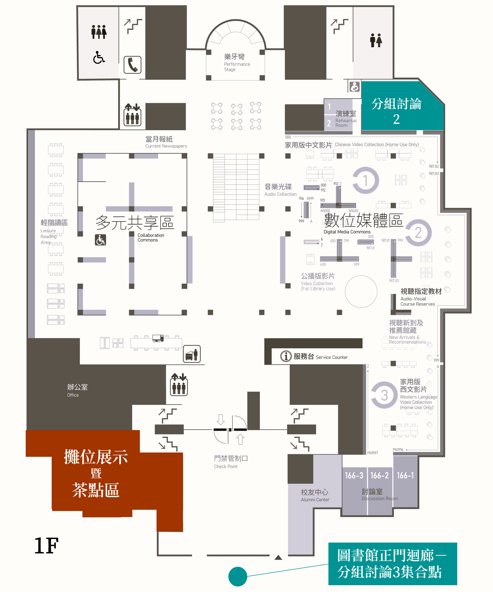 1F 日然廳 ▎攤位展示、茶點區 1F 大團體室 ▎分組討論 2 418 室 ▎分組討論 3 *請於 4/23(四)13:50 至圖書館正門集合